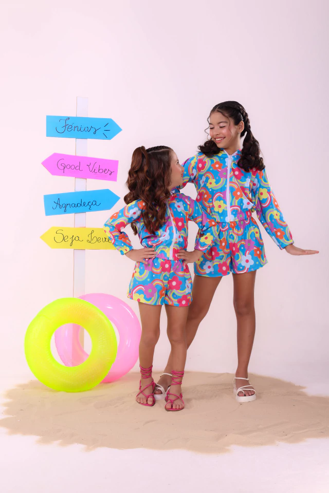 A blusa possui zíper na frente e manga, com um shortinho que deixa o look um charme e versátil. Ideal para quem procura estilo e conforto.
