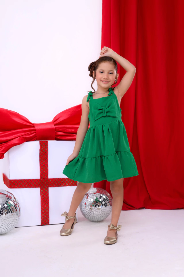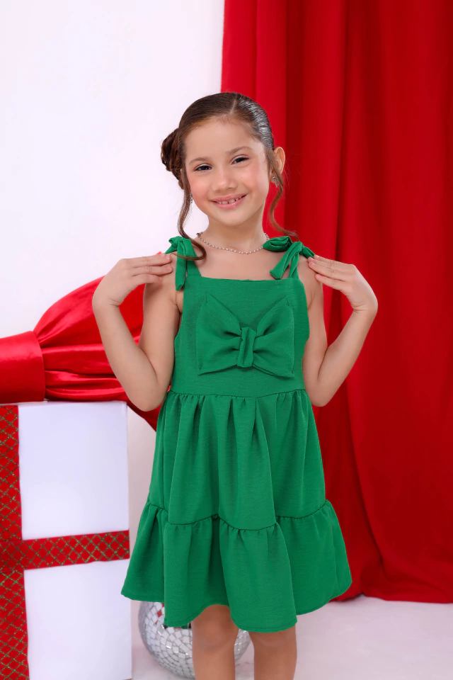 Feito em crepe duna possui alcinha com amarraçao, laço na frente e babado.